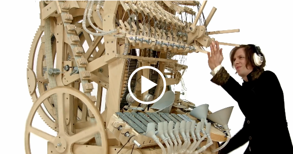 瑞典音乐家马丁-莫林 花了16个月设计制作完成这台《云石机》 奇妙不常见乐器 瑞典音乐家马丁·莫林 花了16个月设计制作完成这台《云石机》,马丁.莫林操作摇动手柄控制,通过传送带将2000粒钢珠依次抬升到云石机顶部,然后驱动一个大的木齿轮转动,在顶部设有32个环形条作用控制...